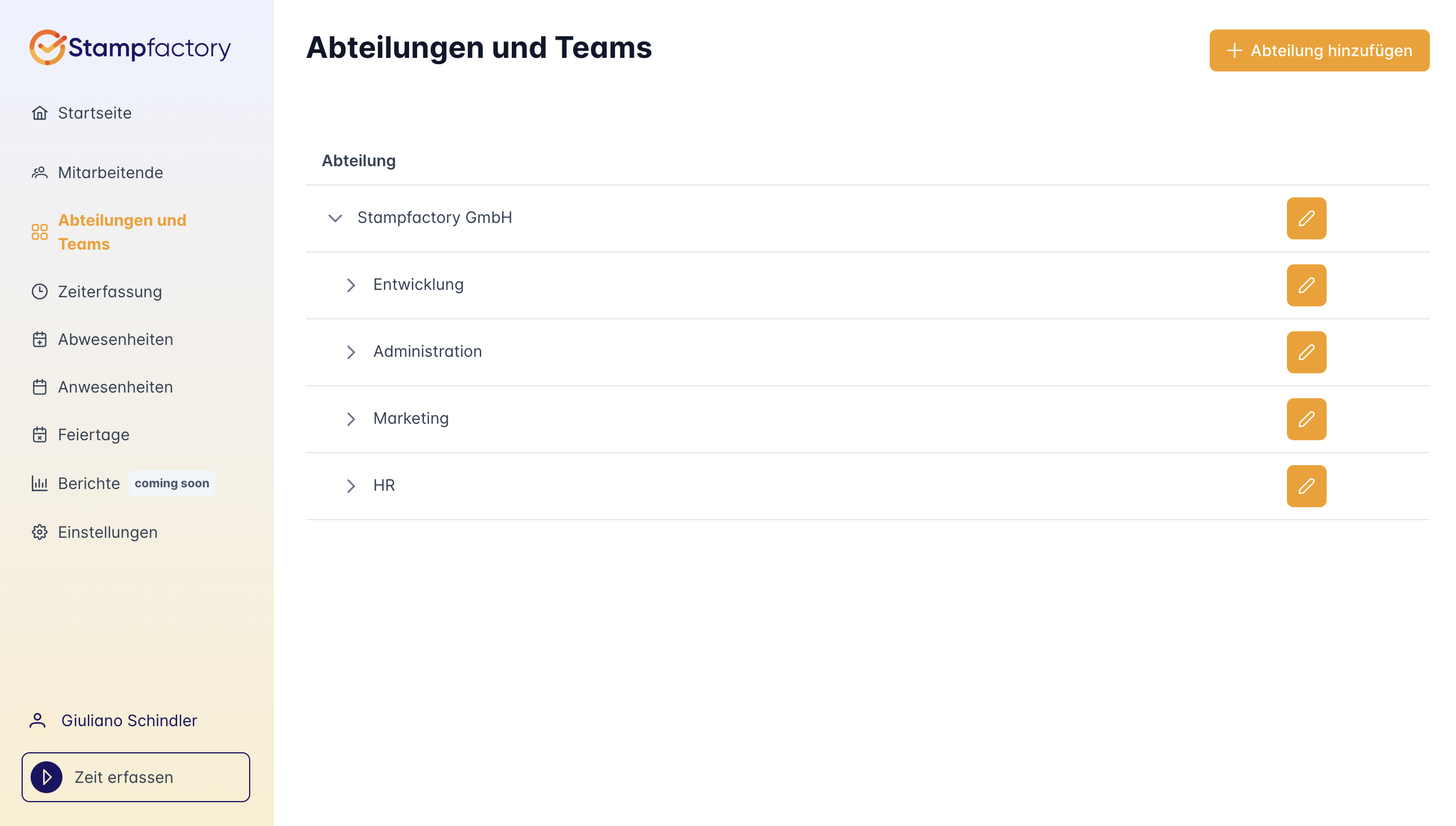 - Abteilungen und Teams