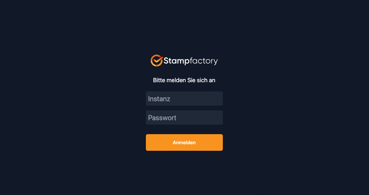 Starten Sie die Stampfactory App auf dem Terminal. Melden Sie sich mit Ihrem Benutzernamen und Passwort an.